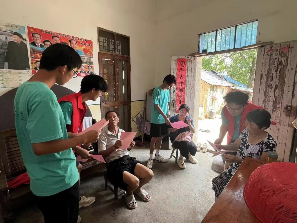 为有效将防溺水的宣传工作贯彻落实到更多村民,团队成员在当地政府工作人员的带领下,深入村庄开展防溺水宣讲活动,发放防溺水宣传材料,向居民普及基本的防溺水知识。团队成员从为什么需要防溺水、如何有效地防范溺水、家长如何加强对孩子的监督等方面入手,深入浅出地传达信息,确保村民对于水上活动的安全隐患有更深刻的认识。通过多样化的宣传方式,村民们不仅增强了安全意识和自救能力,还能够传递所学知识,确保家人安全。