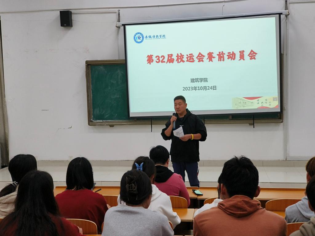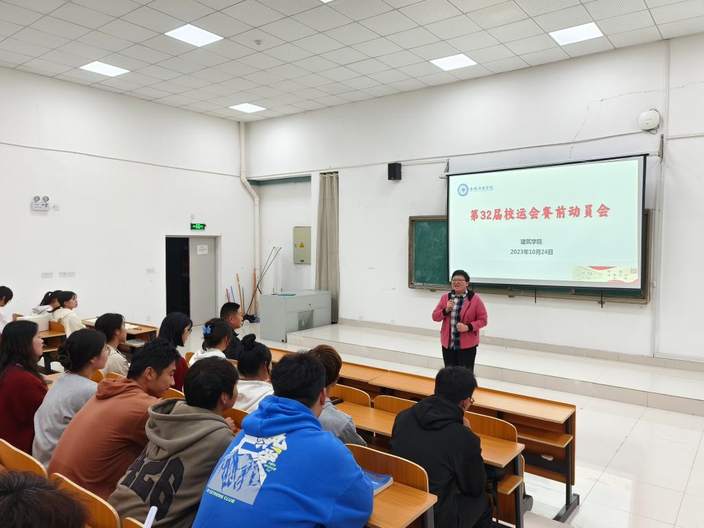 金风送爽,秋色宜人。校第三十二届田径运动会开幕在即,为调动运动员的积极性,保障日常训练及运动会期间各项工作有序进行,10月24日晚,建筑学院在敏行楼c102教室召开校运动会赛前动员大会。建筑学院党委副书记谢宜勤、专职辅导员武辉、学生组织各部门负责人以及全体运动员参加了本次会议。