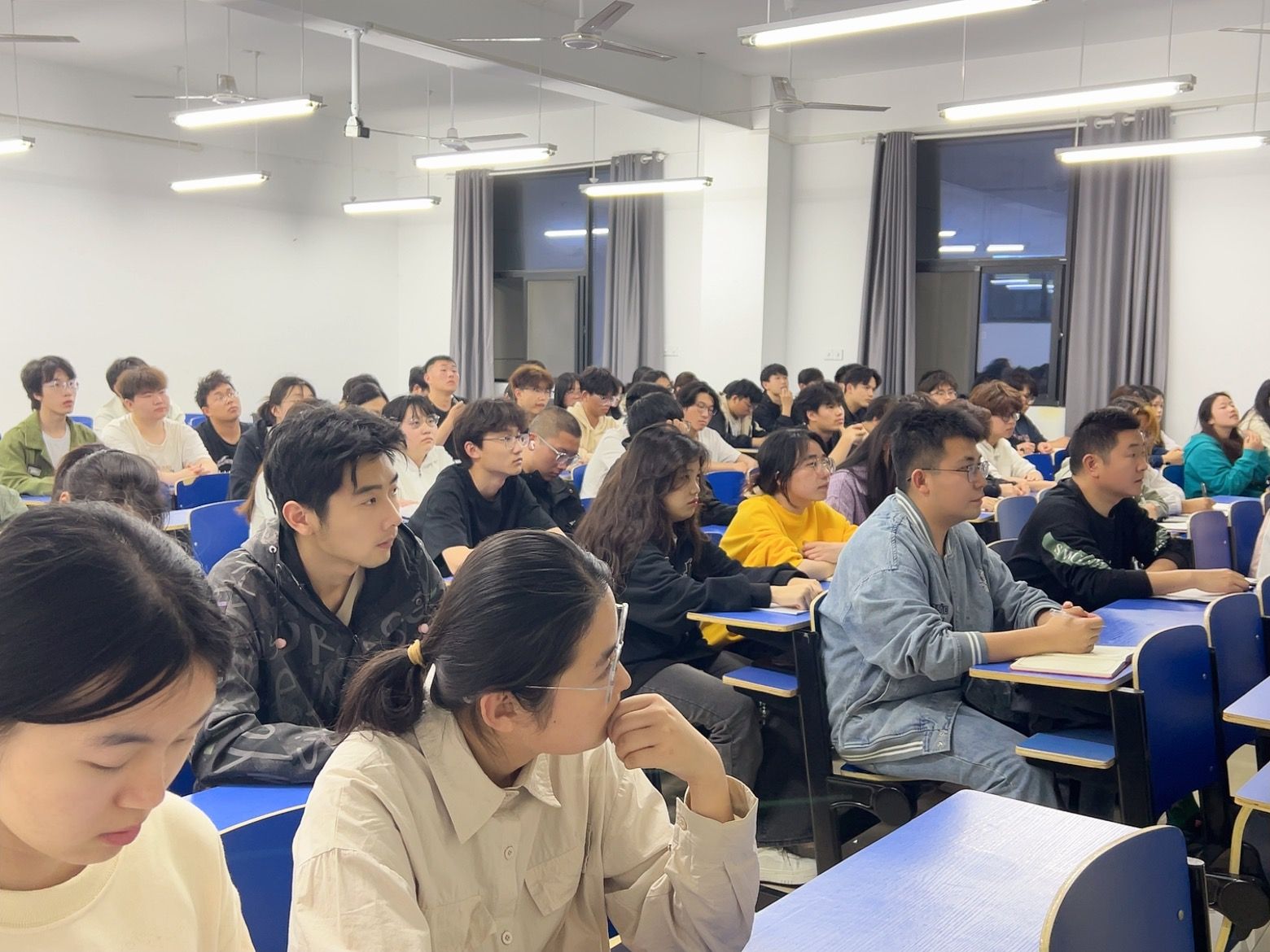 谢宜勤以两会为切入点,详细介绍了十四届全国人大二次会议相关内容,全面学习了《政府工作报告》,重点学习了习近平总书记两会期间深入代表团组时的重要讲话,强调了“发展新质生产力”、“提升新兴领域战略能力”、“全面深化改革”等重要论述。接着,她对马克思主义的信仰、对共产主义的理想信念和对中国特色社会主义的信心进行了解读,教育引导同学们要树立正确的世界观、人生观、价值观,不断坚定牢固树立与时代主题同心同向的理想信念。最后,结合学生工作实情,她要求全体党员和学生干部:一要加强党的最新理论学习,向英雄学,向榜样学,向身边优秀的人学;二要勇于实践,实学实干,脚踏实地,奋力前行; 三要敢于担当,敢于亮剑、敢于迎难而上,敢于承担责任,敢于挺身而出,努力成长为堪当民族复兴重任的时代新人。