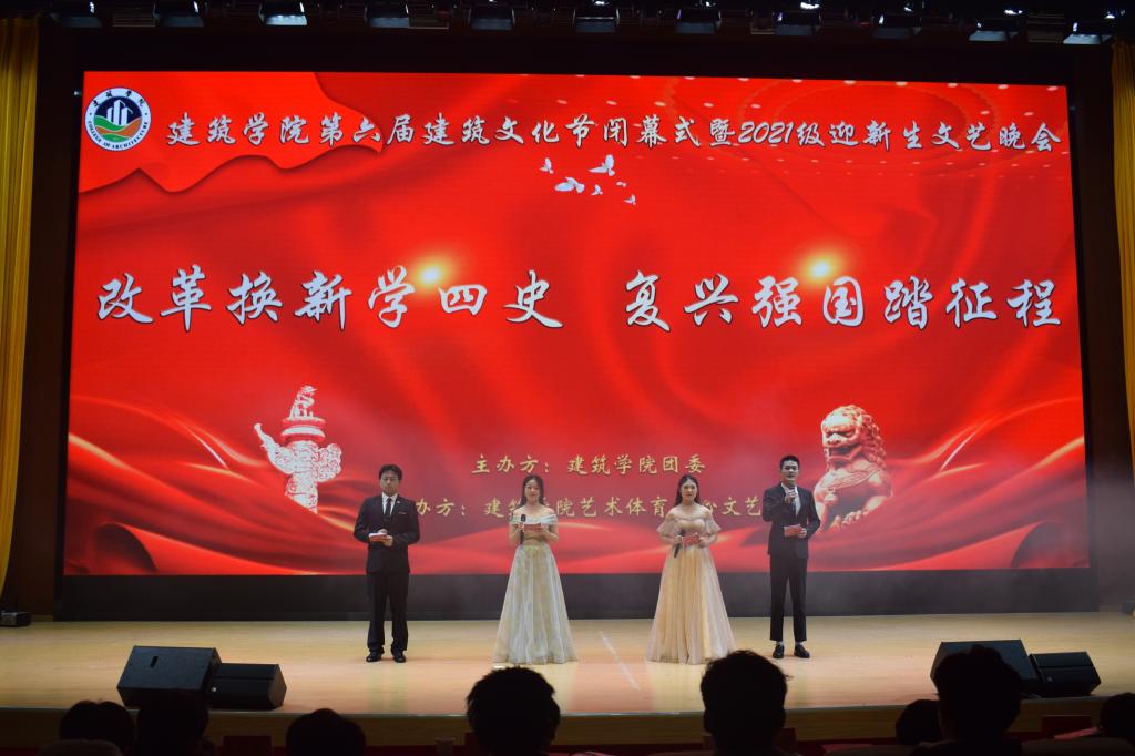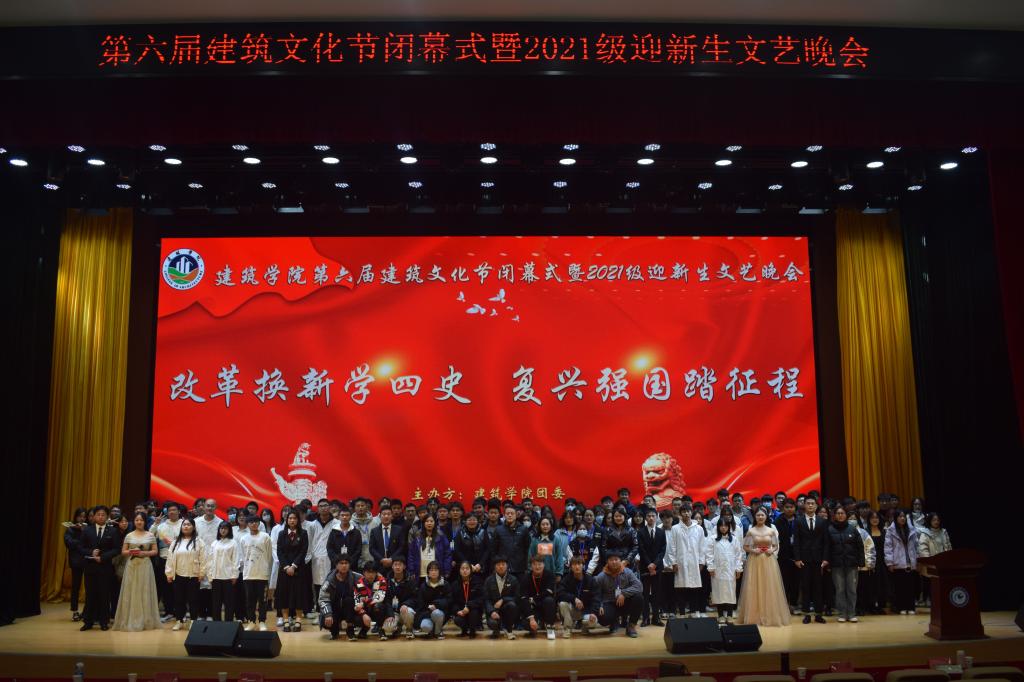 日月不淹,春秋代序。12月5日晚,三亿网页版建筑学院“第六届建筑文化节闭幕式暨2021级迎新文艺晚会”在龙湖校区东辅楼大学生活动中心隆重举行。学院党政领导、全体辅导员,部分教师和同学及2021级全体新生参加了闭幕式。院长张远兵、书记傅友福为文化节系列活动获奖同学颁发了证书,并与同学们一起观看了晚会。