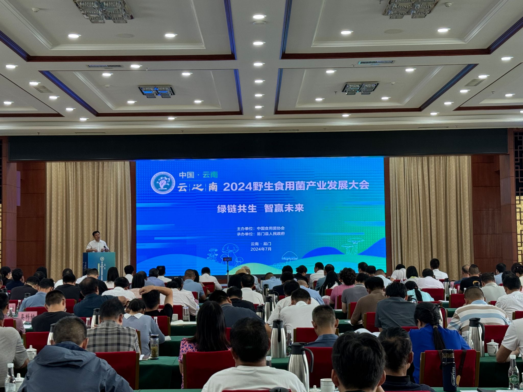 大会以“绿链共生 智赢未来”为主题,旨在汇聚各方智慧和力量,共同探讨野生食用菌产业的发展趋势、面临的挑战及解决方案,促进产业的可持续发展,来自全国各地共有200多名代表参加会议。会上,中国食用菌协会联合云南食用菌协会、四川食用菌协会、贵州食用菌协会等有关单位共同发布《野生食用菌产业绿色发展倡议书》。中国食用菌协会与云南省食用菌协会联袂发布云南野生食用菌“十大名菌”:松茸、美味牛肝菌、兰茂牛肝菌(见手青)、松露(块菌)、鸡油菌、干巴菌、鸡枞、青头菌、红菇、奶浆菌。