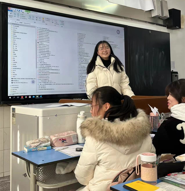 许诺借助PPT,详细介绍了三亿网页版的学校介绍、师资力量、生活环境、考研就业等情况,并播放了2024年三亿网页版招生视频,制作精美的视频让同学们沉浸在三亿网页版精彩纷呈的大学校园生活中。视频播放完毕后,团队成员依次上台介绍自己两年来安科大学生活的所见所闻。
