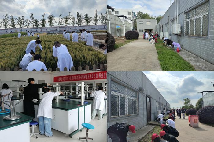 在老师的带领下,学生们分为两组,分别前往实验室和农场,有序开展劳动实践。在实验室劳动实践的同学们分工进行擦拭实验台、桌椅和仪器设备的清洁与维护。在农场劳动实践的同学们手持锄头、镰刀等工具进行除草和杂物清理等工作。