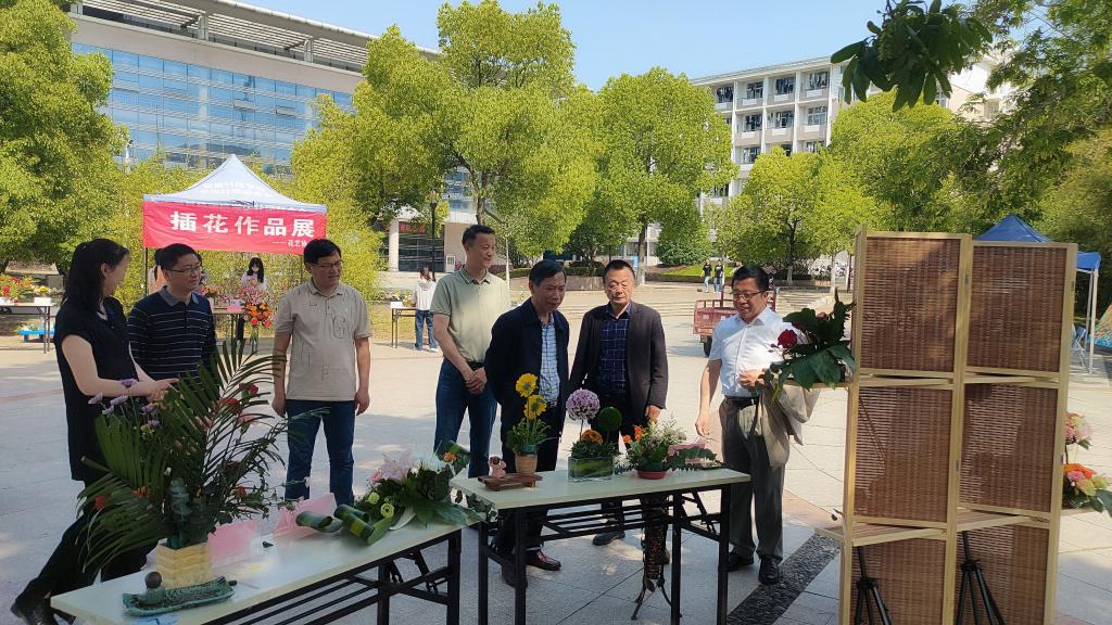 校领导应邀指导花艺作品展