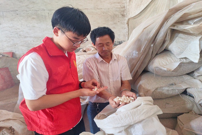 实践队员先后走访考察了安徽国红农业生态有限公司、岳西县太平山茯苓加工厂、岳西县遛遛湾山居等,深入田间、车间,了解茭白的种植时间、技术、产量、品质,茯苓的全产业链生产过程,包括采摘、晒干、清理、发汗、切片、烘烤等,民宿的内部设施、价位、年收入,同时,实践队员们还通过问卷调查的方式,收集当地居民对地方特色产业的认知、评价、市场行情、存在问题以及需要政府帮扶解决的难题等信息资料。