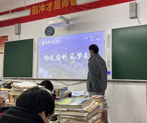 在介绍安科的发展历史、办学格局、学科建设等基本情况后,团队成员刘凯借助PPT介绍了在安科的学习、生活情况。团队成员刘微号召同学们,考上大学后要为自己制订清晰的大学目标,规划充实的大学生活,不负青春,走出一个精彩的人生。团队成员看望了自己的高中班主任与授课老师,向他们汇报了大学的学习与生活,老师们也结合自己的经历,悉心地提出了一些宝贵建议。