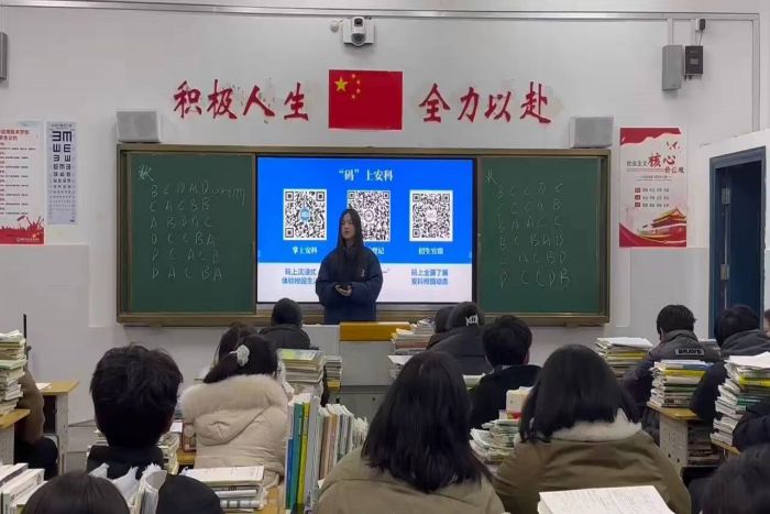 团队成员首先看望了高中老师,并汇报了各自大学规划。随后通过播放宣传片、PPT向学弟学妹们介绍了学校的基本情况、办学特色、学科优势等。团队成员还结合在农学院的亲身经历,分享了自己在大学里的学习和生活。鼓励学弟学妹们努力拼搏、不断进取,勇敢追求自己的梦想,也欢迎他们加入安科,共筑强农梦。