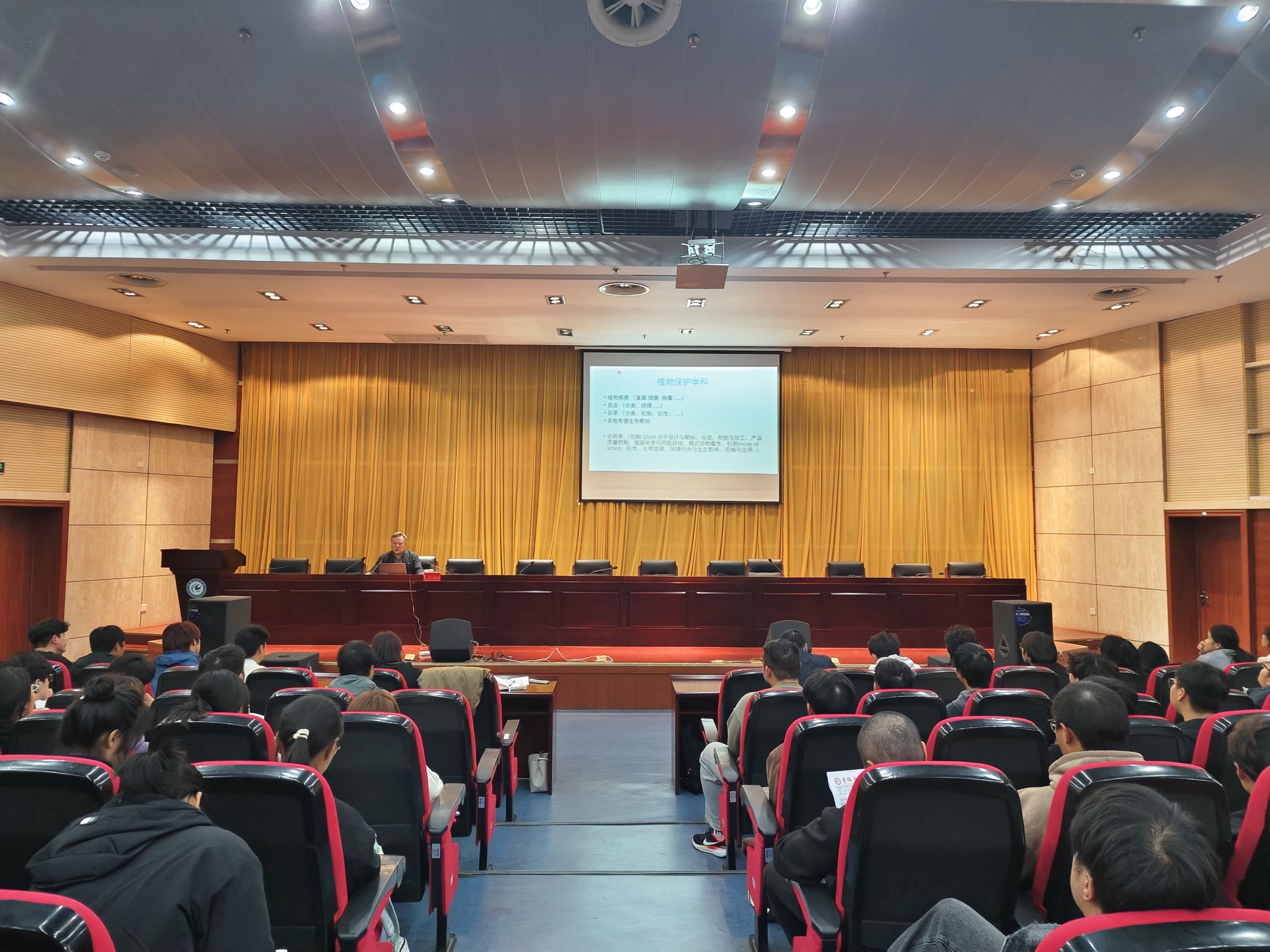 下午,潘灿平院士首先在新图书馆二楼报告厅以“植物保护学科发展与展望”为主题,为植物保护专业本科生带来了一场别开生面的报告,报告会由农学院党委副书记张轶辉主持,报告深入浅出、内容丰富,让同学们从一个个生动有趣的故事和科学研究案例中了解植物保护学科的最新发展动态,增加了学生的专业认同感,激发了同学们对本专业学习的信心与决心。