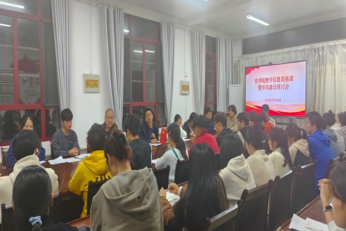 为进一步培育优良的班风学风,积极营造良好的学习氛围,11月14日晚,农学院召开教学信息员座谈暨学风建设研讨会,农学院党委副书记张轶辉出席并讲话,学院有关教师、各班级学习委员和教学信息员等参会。