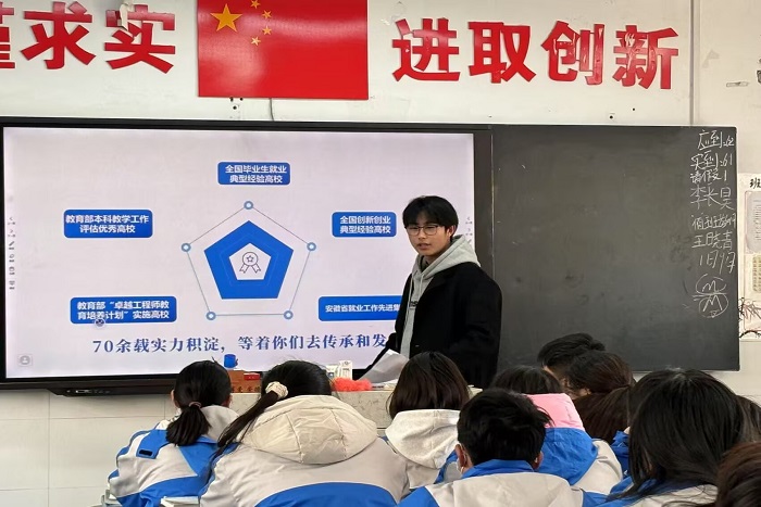 为扩大我校在省内中学的知名度和影响力,让更多的高中生认识安科、了解安科、心向安科,1月9日,农学院2024级植物保护专业尚毅实践团队来到天长市工业学校开展“我回母校报喜讯”2025年寒假社会实践专项活动。