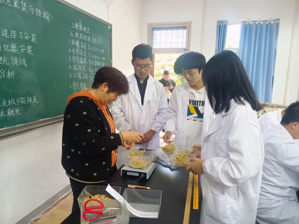 在段素梅老师现场指导下,同学们体验了自己动手测量水稻的穗数和长度、脱粒、数粒等水稻考种相关工作。实践过程中,各个小组有条不紊,同学们各司其职,干劲十足,劳动氛围浓厚,在了解专业知识的的同时又提高了自己的动手能力,真正做到了寓教于乐,寓教于劳动。