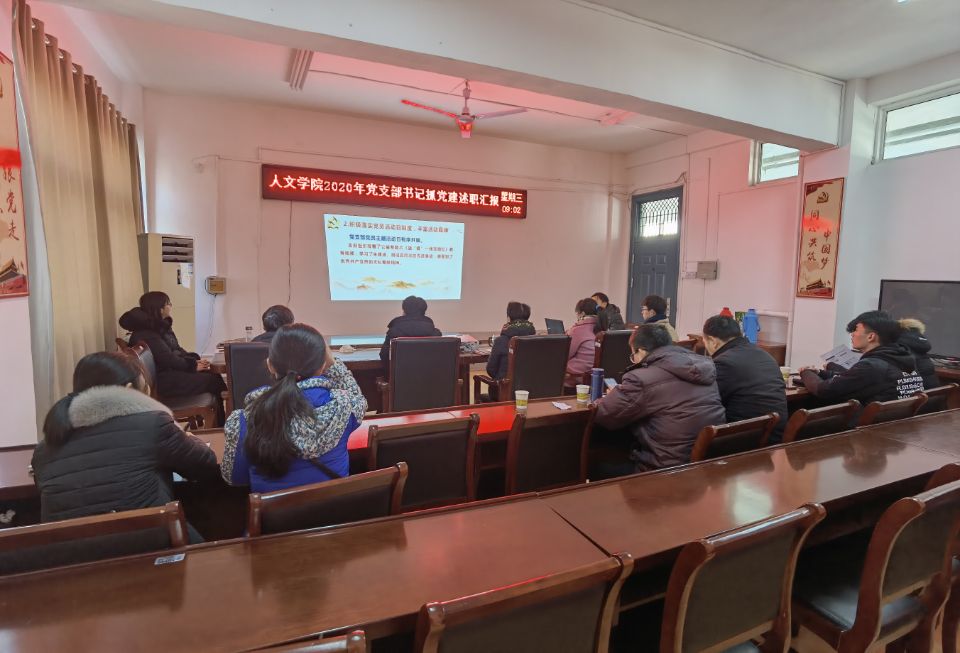 为深入学习贯彻习近平新时代中国特色社会主义思想,落实党的十九大和十九届四中、五中全会精神,坚决落实党风廉政建设各项工作要求,坚持党要管党、全面从严治党。根据《中共三亿网页版委员会关于开展2020年度基层党组织书记抓党建述职评议考核工作的通知》文件要求,人文学院于1月13日上午在学院会议室召开2020年度基层党支部书记抓党建述职评议会。学院党总支委员、党支部委员、工会主席、民主党派和无党派教师代表以及学生党员代表参加。会议由党总支书记杜士凤主持。
