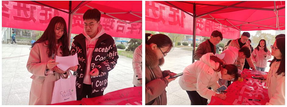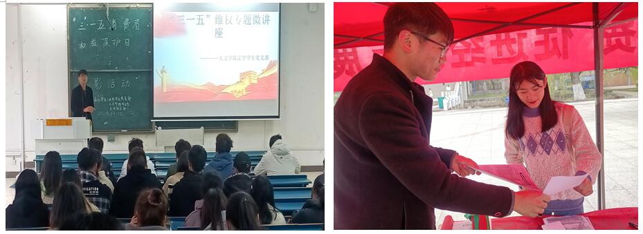 活动分为两个部分,一是现场宣传,二是观影讲座。现场宣传通过悬挂横幅、邀请同学们在横幅上签字、深入学生寝室发放消费者权益保护宣传单、展出消费者权益保护宣传展板等方式进行宣传。活动现场中,过往的同学们踊跃配合,积极签字,并对有关消费权益日的问题进行咨询,法学学生党支部的学生党员们都耐心地一一解答。