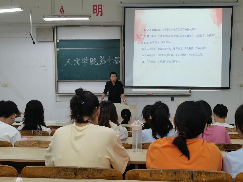 为不断加强学生组织建设,提升学生干部素质,推进学期初各项工作的顺利开展,人文学院于9月9日中午在求知楼A104教室召开学生干部培训会。会议由学生会指导教师焦雪松主持,全体分团委委员、学生会各部门负责人参加。