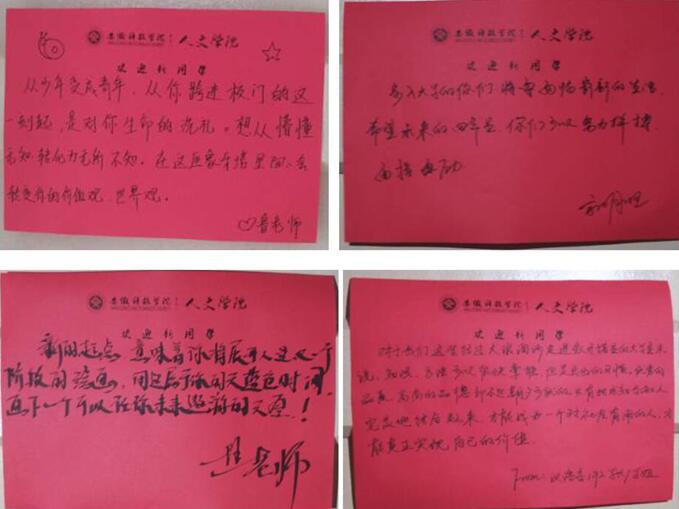 此次迎新因为疫情原因,较之以往更加注重新生在入校时的便捷和安全,每一位工作人员和志愿者都积极热情的迎接新生,尽最大化做到一对一服务,带领新生完成报道登记、行李搬运、宿舍介绍等流程。同时人文学院今年在迎新时积极创新,给每位新生制作了带有名字和院徽的胸牌,这是学院送给新生的一份小小的礼物,以此表明欢迎21级新生加入人文学院这个大家庭。将新生引领到宿舍门前时,便会发现门上都张贴了辅导员及学长学姐们给予新生的寄语,热情的欢迎他们迈入大学,迎接新的人生起点。