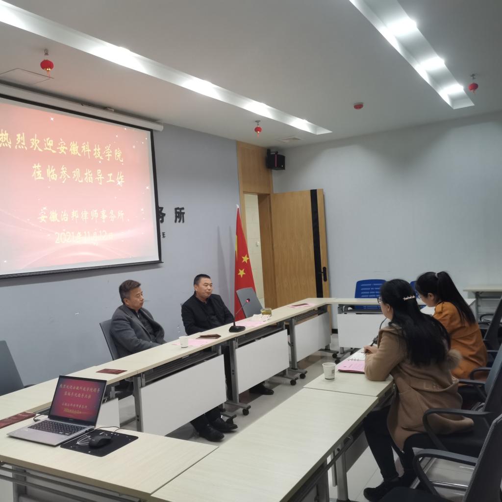 安徽治邦律师事务所曾获得过“安徽省优秀律师事务所”、“省综合实力50强”、“蚌埠市甲级律师事务所”、“全省律师行业基层党建工作示范岗”等荣誉称号,是一家跨省区经营的综合性律师事务所,在业内享有较高声望,本次就业调研活动为人文学院进一步创新人才培养模式,增强校企联动、推动人才发展提供了明确方向。(特约通讯员:焦雪松 审核:李沙娜)
