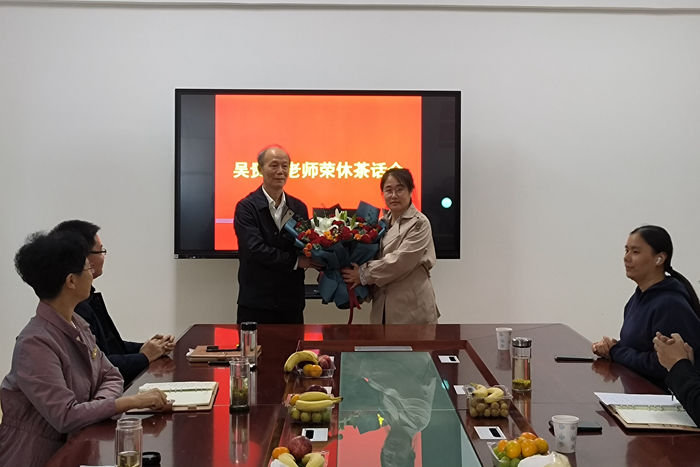 10月18日下午,人文学院在学院党员活动室为刚退休的法学系教授、原人文学院院长吴贵春老师举办了一场简洁而隆重的荣休茶话会,向多年来为学院发展做出巨大贡献的老领导表达最崇高的敬意和最真挚的感谢。大家共聚一堂,感怀岁月,温暖前行。人文学院党委书记杜士凤、副院长李晓东、副院长牛永辉、副书记李沙娜、分工会主席高晓宁、法学系主任张晓云、中文系主任苏兆龙等参加茶话会。会议由杜士凤主持。