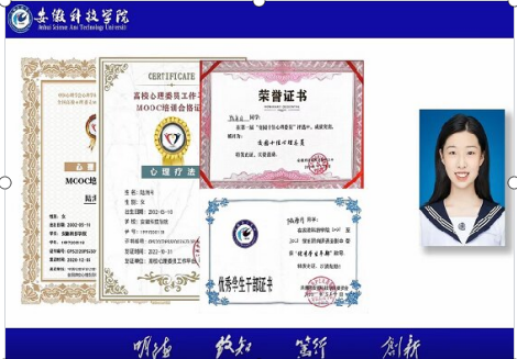 陆海月同学在担任心理委员期间,广泛学习各类心理知识,关注同学心理状态,多次协助人文学院开展“四类”重点关注学生的心理排查活动,定期举办心理主题班会,组织学生参加心理培训讲座、校园心理情景剧大赛及心理知识竞赛等系列活动 30 余次。在认真完成心理委员工作的同时,陆海月同学还注重全面发展,学业成绩优异,连续两年获国家励志奖学金、校“三好学生”称号,获校优秀学生一等奖学金、二等奖学金,获得校“优秀学生干部”、“校园十佳心理委员”、新媒体中心“先进个人”、人文学院“学生会先进个人”等荣誉称号。