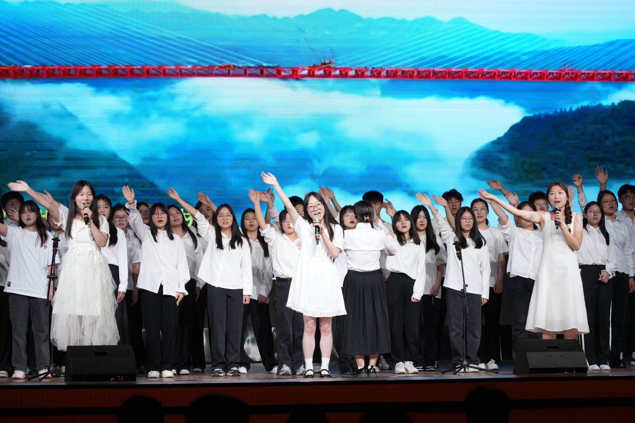 伴着音乐的鼓点,2023级各班级依次登台表演。《我们的明天》带着远方的祝福,悦动的音符于空中辗转落成青春的注脚;在《金陵十三钗》的演绎下,厚重的历史铺开了岁月的沉淀;精彩的舞台剧、深情的诗朗诵、整齐动听的合唱,形式各异的舞台表演,展现着各班同学激昂的青春风采。舒缓的旋律,诉说夏日的告别与开始,汉语言文学专业2021级同学倾情献上舞台剧《暗恋·桃花源》,共同告别又一季毕业青春。