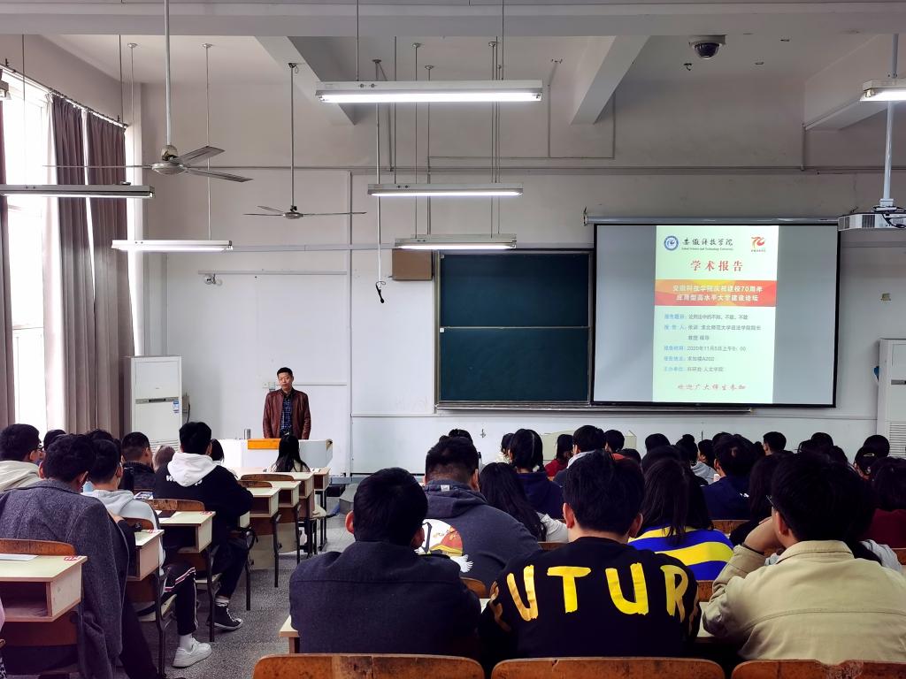11月5日上午,应人文学院邀请,淮北师范大学政法学院副院长、教授、博士张训,在求知楼A202教室举办《论刑法中的不知、不能、不敢》专题法治报告。法学专业、中文专业师生到场聆听,报告由人文学院副院长李晓东主持。
