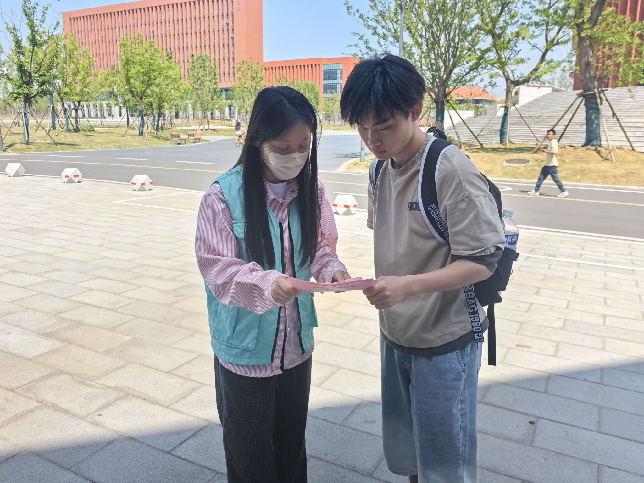 活动现场以知识问答为载体,题目以谷雨节气与虫害防治为中心,包括谷雨的气候特点、传统习俗,以及蚊虫的生活习性、有效防治方法等。学院志愿者向过往同学发放精心制作的校园驱虫防虫知识传单,讲解谷雨节气的由来以及常见害虫的预防与应对措施,从日常清洁小窍门到推荐天然驱虫植物,为同学们提供了全面实用的校园驱虫防虫指南。