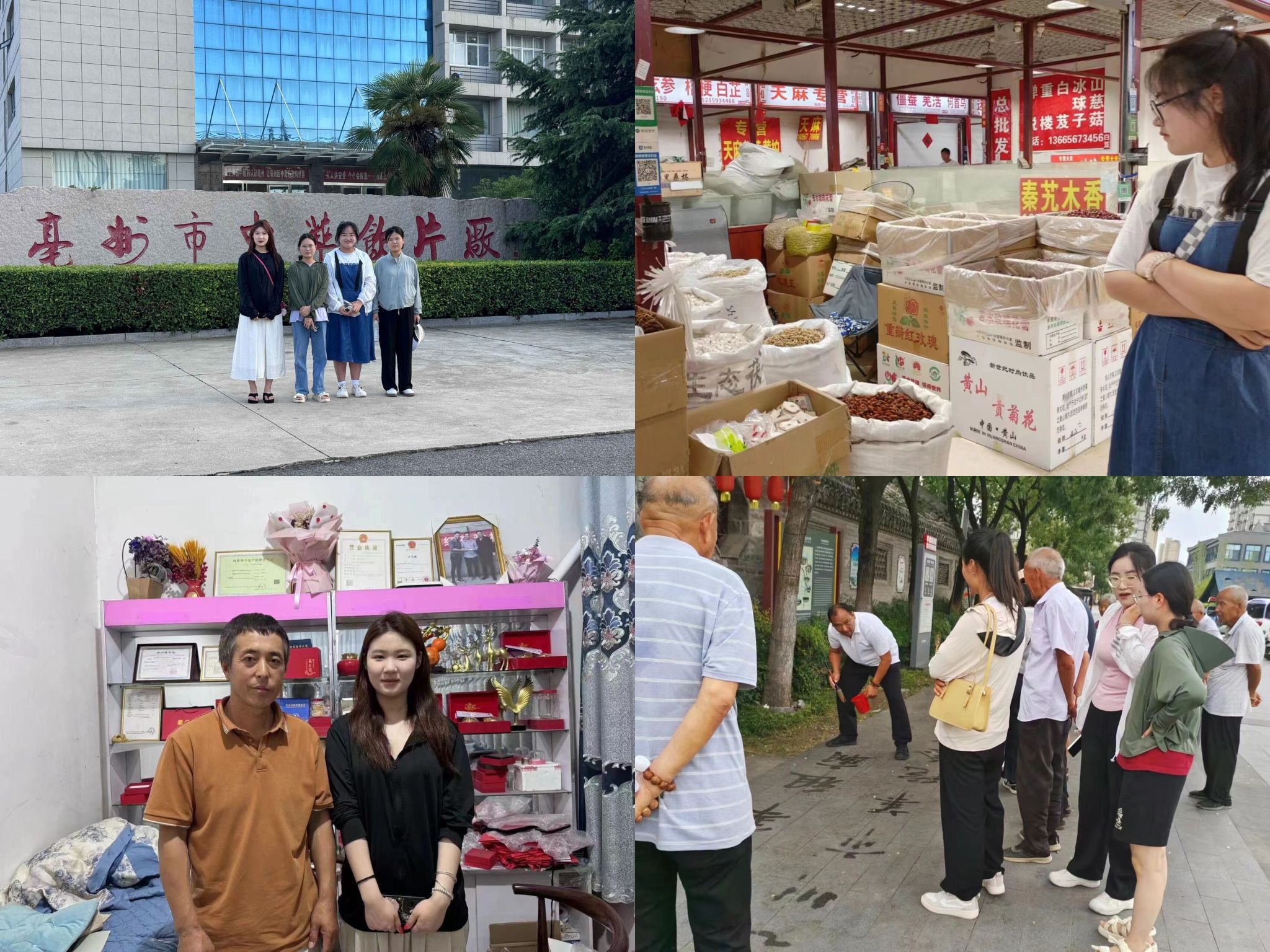 实践团队首先抵达亳州中药材批发市场,围绕如今亳州中药材的挖采及售卖情况开展调查。近年来,亳州市深挖中医药文化资源潜力,明确“一核一带八区”中医药健康旅游产业总体布局,全力打造中医药健康旅游示范区。此外,亳州还推出了五禽戏传习体验、华佗夹脊穴理疗等服务项目,形成了一批以“食养”“药养”“水养”“体养”“文养”为特色的中医药健康旅游品牌。次日,实践团队抵达华祖庵围绕亳州地区中药材的起源及其发展进行考察。团队成员通过学习调查,了解到亳州自商汤建都以来已有3700 多年的历史。东汉末年,神医华佗的故乡就是亳州,后人延续并发扬了华佗在医学上的成就,带动了亳州中医药的发展。明清时期,亳州位居全国四大药都之首,到了清朝末期更是成为药商云集的中药材集散中心,经销着两千多种中药材。最后,团队成员到达闫义德藏红花种植合作社,围绕中药材在亳州当地的种植情况与当地种植户进行交流考察。