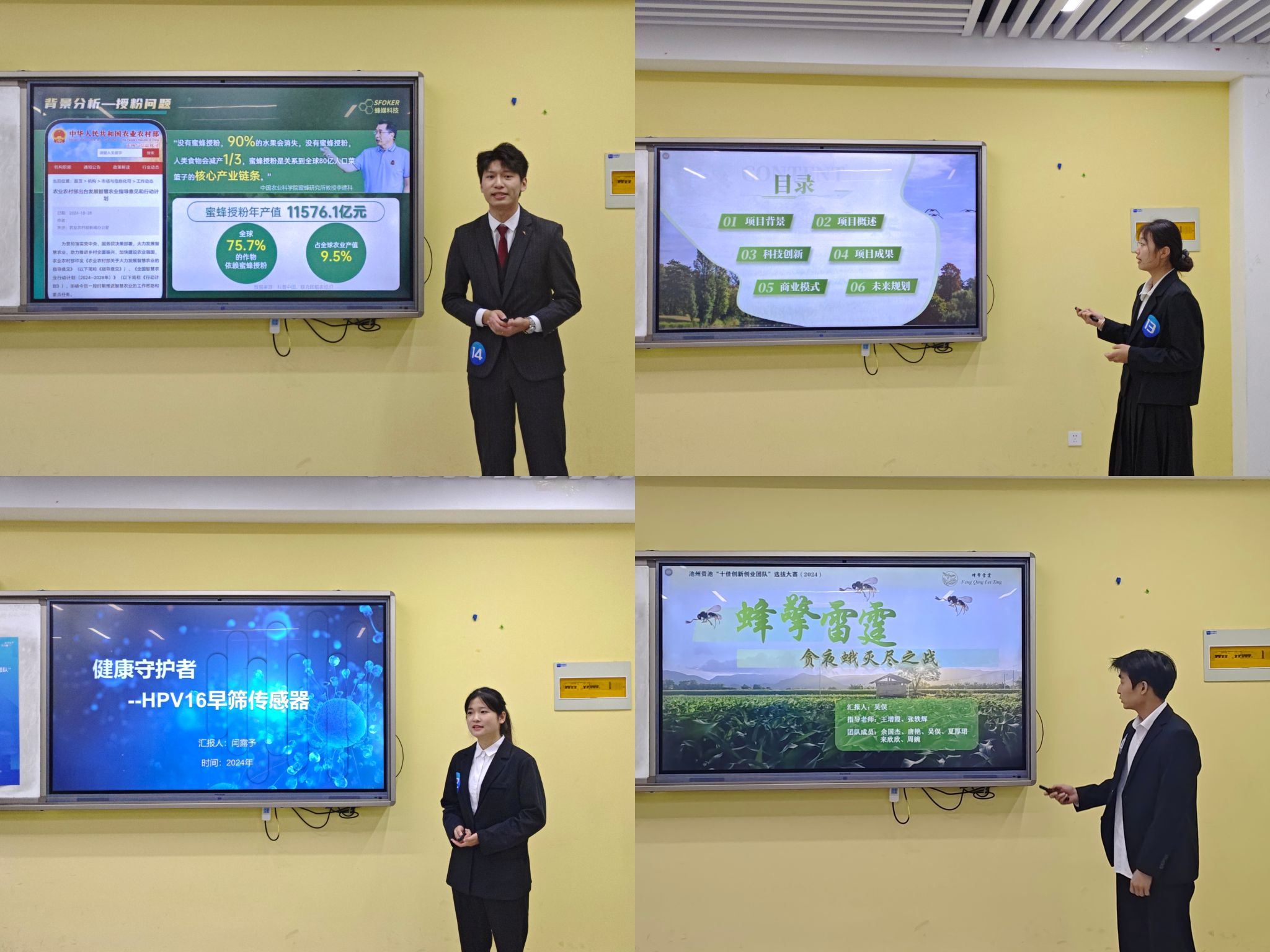 本次大赛自10月份启动起来,受到了师生的积极响应与广泛参与。经各学院初赛推荐,校级复赛评选,最终“节尽所能—智控节能搭快车,助力全球节能发展”等15个项目晋级校决赛。此次决赛现场,各团队以饱满的热情和专业态度,通过PPT路演、视频、实物展示等多种形式,向评委和观众生动地展示了各自项目的产品技术、创新点、商业模式、竞争优势及发展规划等。评委们则从创新引领性、市场潜力、可行性和社会价值等多个维度对项目进行综合评估,提出了宝贵的意见和建议。最终经过激烈角逐,评选出一等奖1项,二等奖2项,三等奖3项,优秀奖9项。