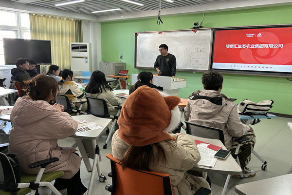 11月29日下午,海亮明康汇生态农业集团校招负责人在求知楼B303教室开展就业指导讲座,并举办专场招聘会。校招负责人马先生担任主讲。学院2021级部分学生到场聆听讲座并参加专场招聘。