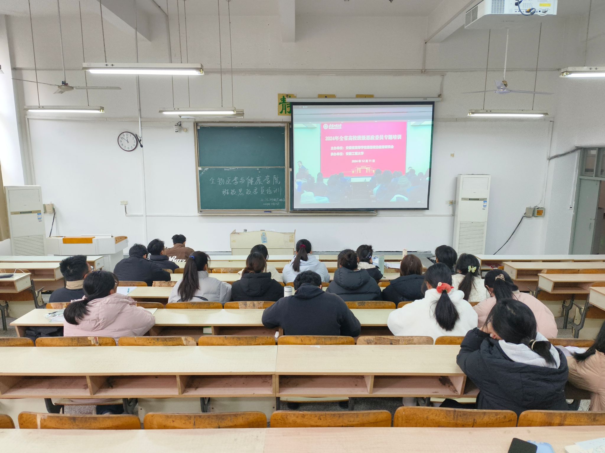 为落实立德树人根本任务,推进学生思想政治工作改革创新,12月11日下午,生物医学与健康学院在求知楼A104教室组织班级思政委员参加线上培训。本次线上培训由安徽师范大学马克思主义学院教授、博士生导师路丙辉老师担任主讲。全体非毕业班班级思政委员参与此次培训。
