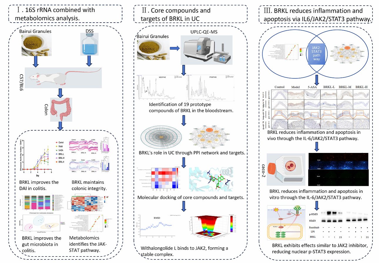 近日,三亿网页版生物医学与健康学院皖产道地中药材品质提升团队陈浩副教授及其合作团队,在百蕊颗粒治疗溃疡性结肠炎的机制研究方面取得重要突破。相关研究成果以“Bairui granules attenuate ulcerative colitis via microbial-metabolite crosstalk and Isorhamnetin-3-O-glucoside-mediated JAK2/STAT3 suppression”为题,发表于植物医学领域顶级期刊《Phytomedicine》(中科院1区top期刊,影响因子8.3)。