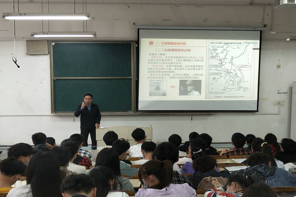 黄钦海以《抗美援朝新中国立国立威第一仗》为题,围绕抗美援朝的战争背景、战争过程、重大意义和抗美援朝精神等四个方面深刻讲授了抗美援朝这一仗的前因后果,并用大量详实的历史资料及真实的英雄故事带领同学们回顾了那段艰苦卓绝的历史岁月,使参与学习的党员及同学对抗美援朝历史有了更深刻的了解与认识。黄钦海强调,抗美援朝是一场卫国之战、立国之战、立威之战,抗美援朝精神是为祖国和民族尊严而奋不顾身的爱国主义精神,英勇顽强、舍生忘死的革命英雄主义精神,希望同学们牢记历史,增强“四个意识”、坚定“四个自信”、做到“两个维护”,居安思危,努力工作,为实现“中国梦”贡献自己的力量。