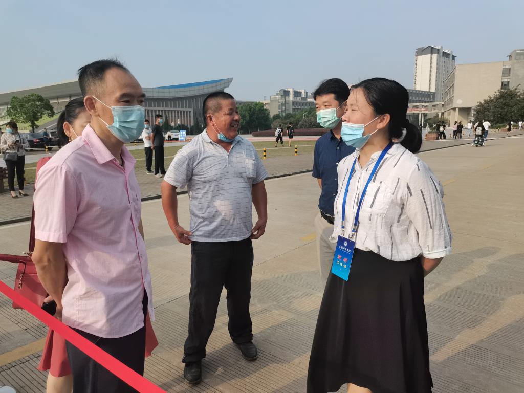 为让家长深入了解新生入校后的生活和学习细节,学院党委副书记、副院长(主持工作)孙玉军和党委副书记彭丽萍等候在新生入校口,为新生家长介绍校园的生活配套设施、新生报到后的各项安排等。同时宽慰家长想念孩子的时候可以联系辅导员了解他们的近况。