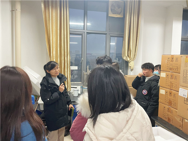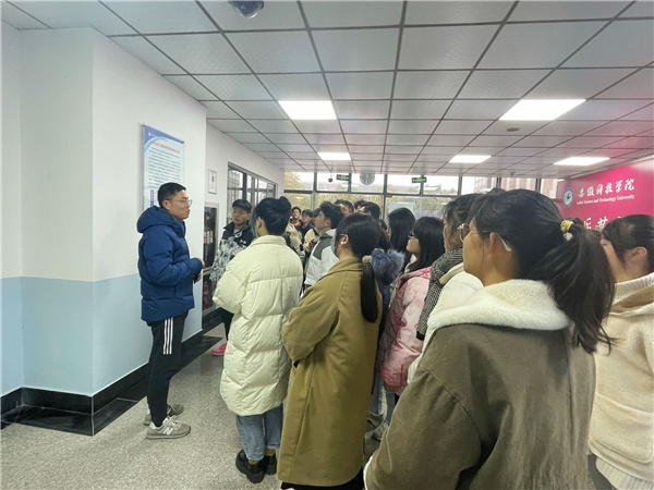 汪雁在带领21级生物制药新生参观躬行楼8号楼实验室时强调,同学们无论身处何地,一定不能忘记学习的重要性。汪雁表示,将技术转换成应用,转换成能够落地的实验成果,才是同学们最需要学习的能力;在专业上下的功夫,绝不是死记硬背,而是要真正的理解贯彻。