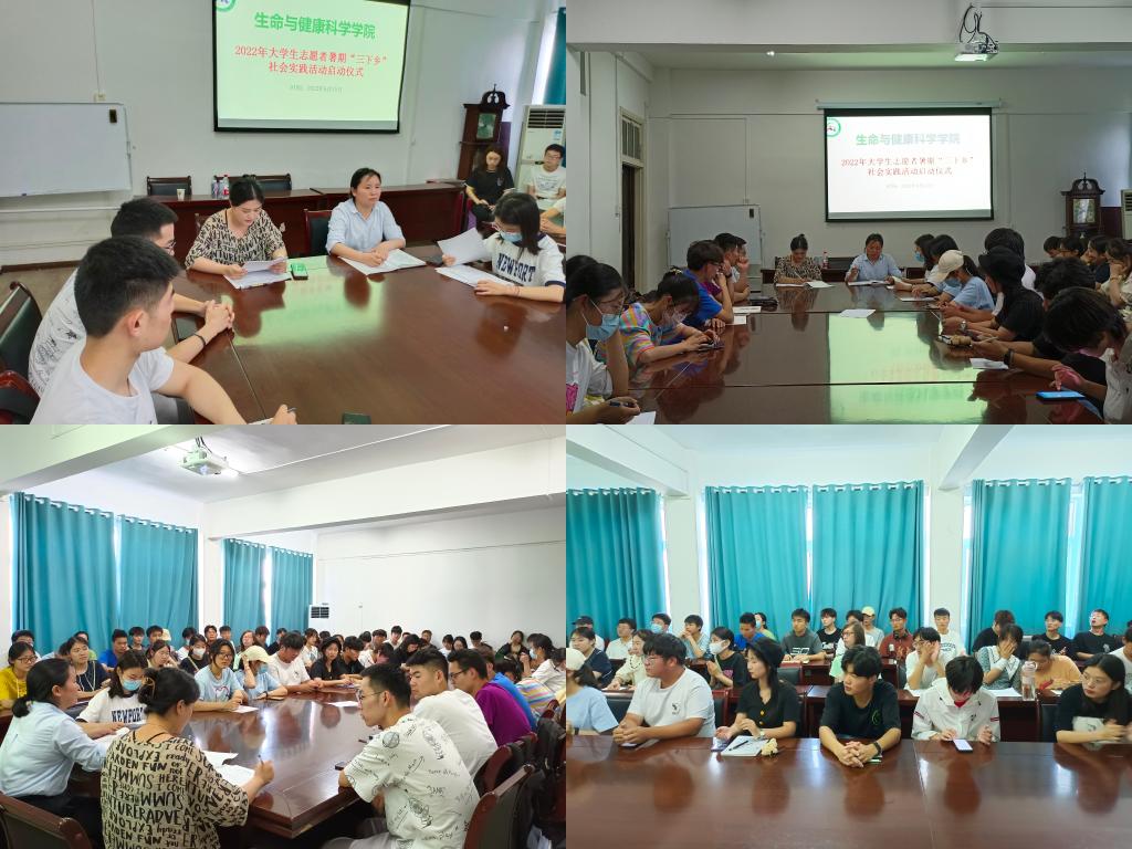为确保暑期社会实践活动各项工作有序开展,6月15日下午,生命与健康科学学院在学院会议室举行2022年暑期“三下乡”社会实践活动启动仪式。学院党委副书记彭丽萍、团委副书记姜毅、专职辅导员张迪出席会议,各社会实践团队负责人参加会议。会议由姜毅主持。