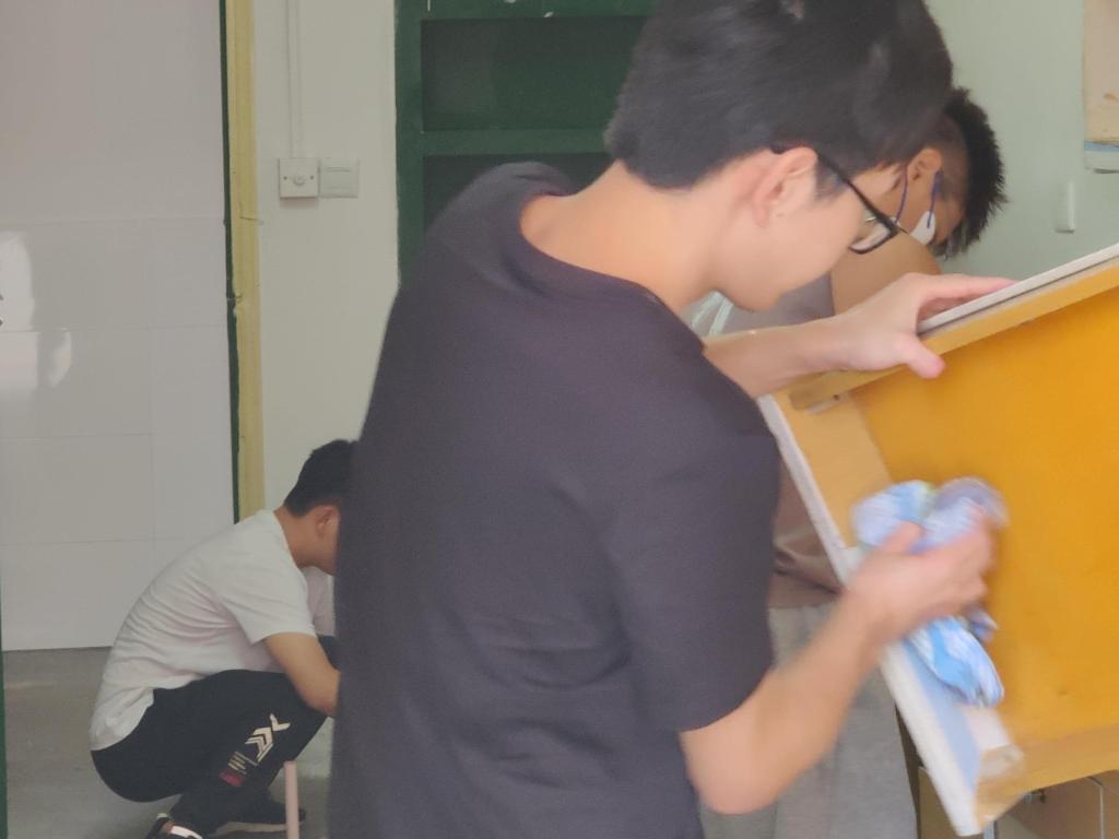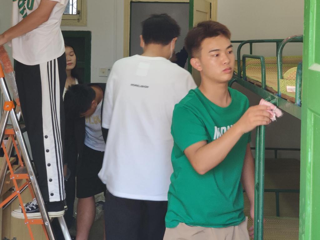 清扫过程中,同学们分工明确,以小组为单位配合开展新生宿舍的清洁工作。同学们自带扫帚、垃圾袋、拖把、毛巾等工具,积极主动地打扫宿舍的每一处角落,同时认真排查宿舍存在的安全隐患,以及设施是否完好等问题,及时汇总上报,为新生进校做足准备。在同学们的共同努力下新生宿舍焕然一新,圆满完成宿舍清扫工作。