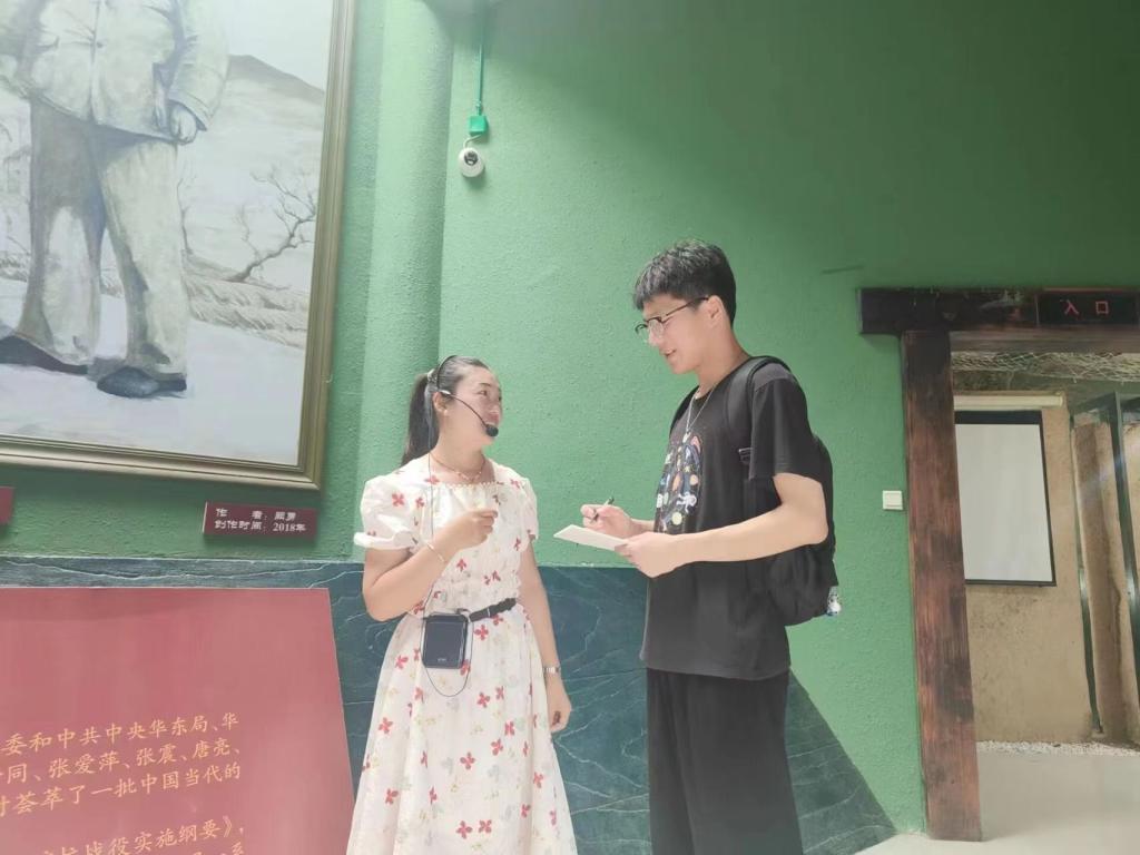 展览厅里陈列着大量与渡江战役相关的实物和图片,生动再现了战斗的场景和解放军战士的英勇事迹。团队成员通过每一件展品、每一张图片、每一个故事深刻了解了渡江战役的背景、起因以及艰苦程度。接着,团队成员与馆内解说员积极沟通,希望解说员在镜头下详细讲解渡江战役的历史,成员们后期编辑视频发布到网络上供其他同学学习。最后,团队成员们参观了旧址中邓小平同志、陈毅同志、张震同志的住所,亲身感受到了解放军战士艰苦的生活环境,也领悟到了解放军战士不畏艰险的斗志与无私奉献的精神。