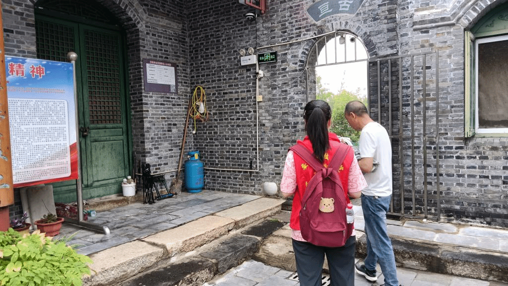 阳光宝贝宣普队于7月10日上午到达姚湾渡口,联系到当地村干部王部长,并表明宣普队的来意,王部长热情的向服务团介绍临北回族村的历史,并带领宣普队参观了当地的文化站,了解并观看具有淮河文化特色的非遗临北狮子舞相关视频。随后的两天,王部长带领宣普队参观了清真寺、回族的特殊服饰、特色建筑和回族的民族风俗、临北回族乡的葡萄园、玉米、黄桃蔬菜种植基地、牛羊养殖场以及品尝了当地的特色美食-烫羊,感受到当地回族人的热情。