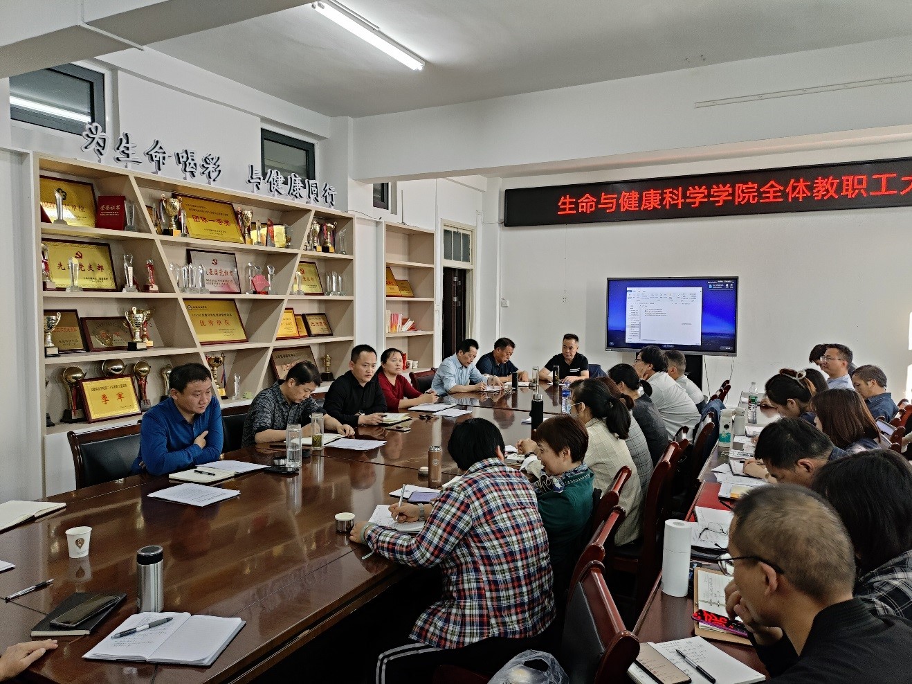 10月18日下午,生命与健康科学学院在学知楼417会议室召开全体教职工会议,推进科技创新等重点工作任务落实。会议由学院党委副书记(主持工作)张传德主持。