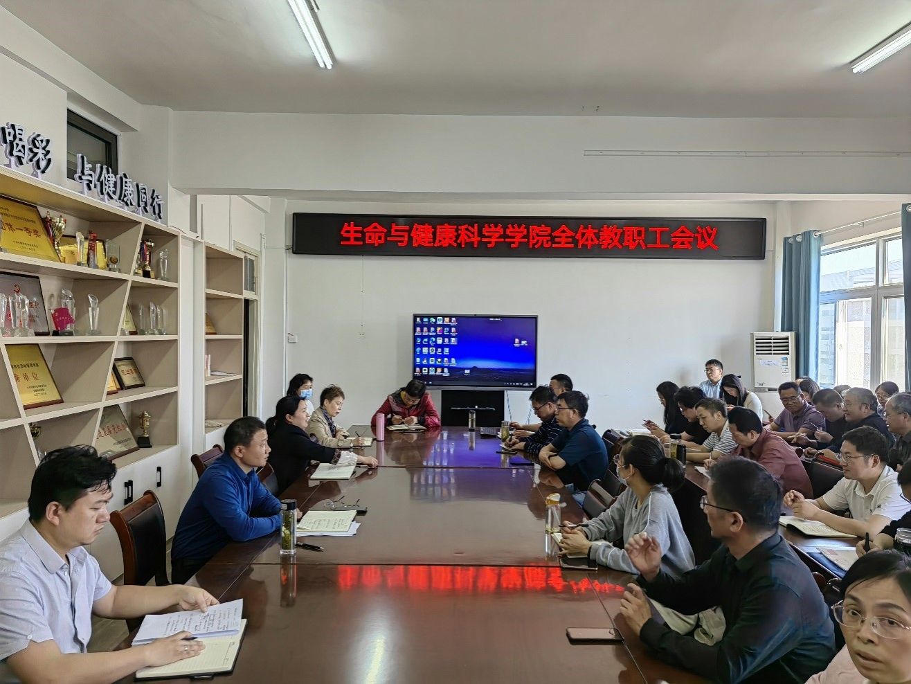 为做好本科教育教学审核评估入校评估工作,5月15日下午,生命与健康科学学院在学知楼417室召开全体教职工会议,传达有关会议精神,落实有关工作要求。会议由学院党委副书记、副院长(主持工作)钱立生主持。