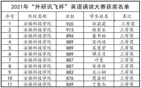 由安徽省高等学校图书情报工作委员会、安徽省高等学校数字图书馆和科大讯飞股份有限公司主办,合肥学院图书馆承办的2021“讯飞杯”全国高校英语口语大赛圆满落下帷幕。经过一个月的激烈角逐,我校毕莉莉等11位同学荣获三等奖。