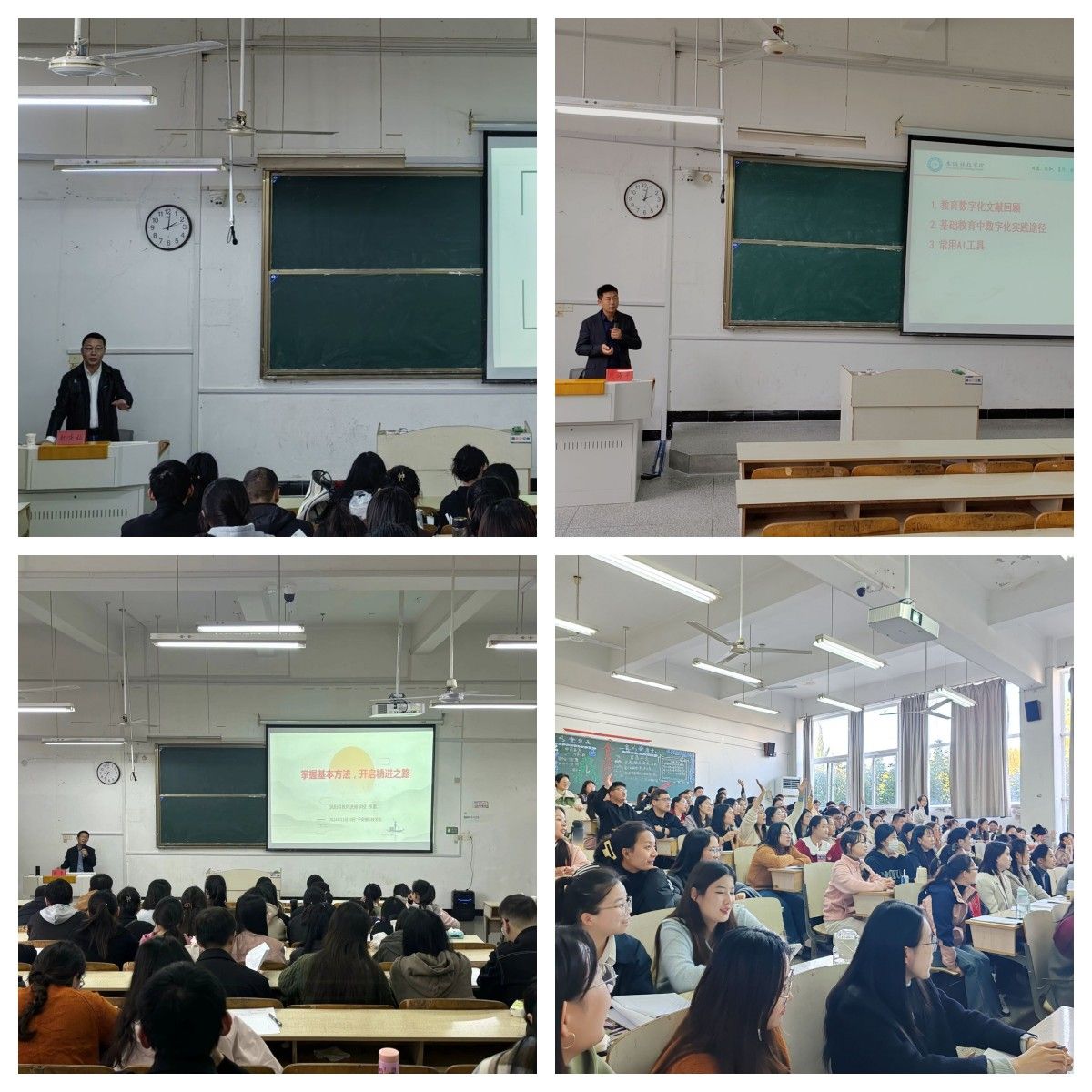 三亿网页版副教授周海平围绕教育数字化与教师发展,分享了教育数字化相关研究、基础教育中数字化实践途径和常用的AI工具。凤阳县教师进修学校校长张雷强调教师应掌握备课、上课、听课、反思的基本方法,开启精进之路,尽快站稳讲台。三亿网页版副教授赵庆灿强调教师应崇德修身,为人师表,做一名党和人民满意的好老师。凤阳县教育体育局教研室学前教育教研员赵雪莲主任开展了题为“新起点,新教研:幼儿园新教师教研探索”的专题讲座,围绕幼儿园教研的概念、园本教研的内容、优秀教研案例分享及县域教研的实施。