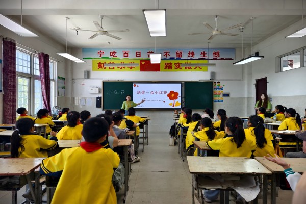 在沈浩同志先进事迹陈列馆,党员们通过听讲解员解说、看实物展品和图片资料,深入学习沈浩同志扎根基层、服务群众的先进事迹,学习沈浩同志的公仆情怀。随后,前往小岗学校开展双语兴趣课堂,通过中英文结合方式讲述党史故事,激发学生爱国情怀。学生党员牵头打造“党史双语课堂”,运用专业所长将在跨文化传播中筑牢“四个自信”。