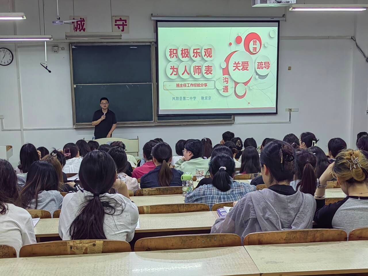 耿京京结合自身多年班主任工作实践,从班主任工作的意义、类型和实施建议三个维度展开分享,详细阐述了班委会组建、班级信息员遴选、班规制定与执行、学生帮扶制度建立等班级管理核心环节,并强调通过记录班级生活、关爱学生成长、加强家校沟通等方式提升管理效能。讲座中,他以丰富生动的案例,向师范生传授了可借鉴、可操作的班级管理经验。