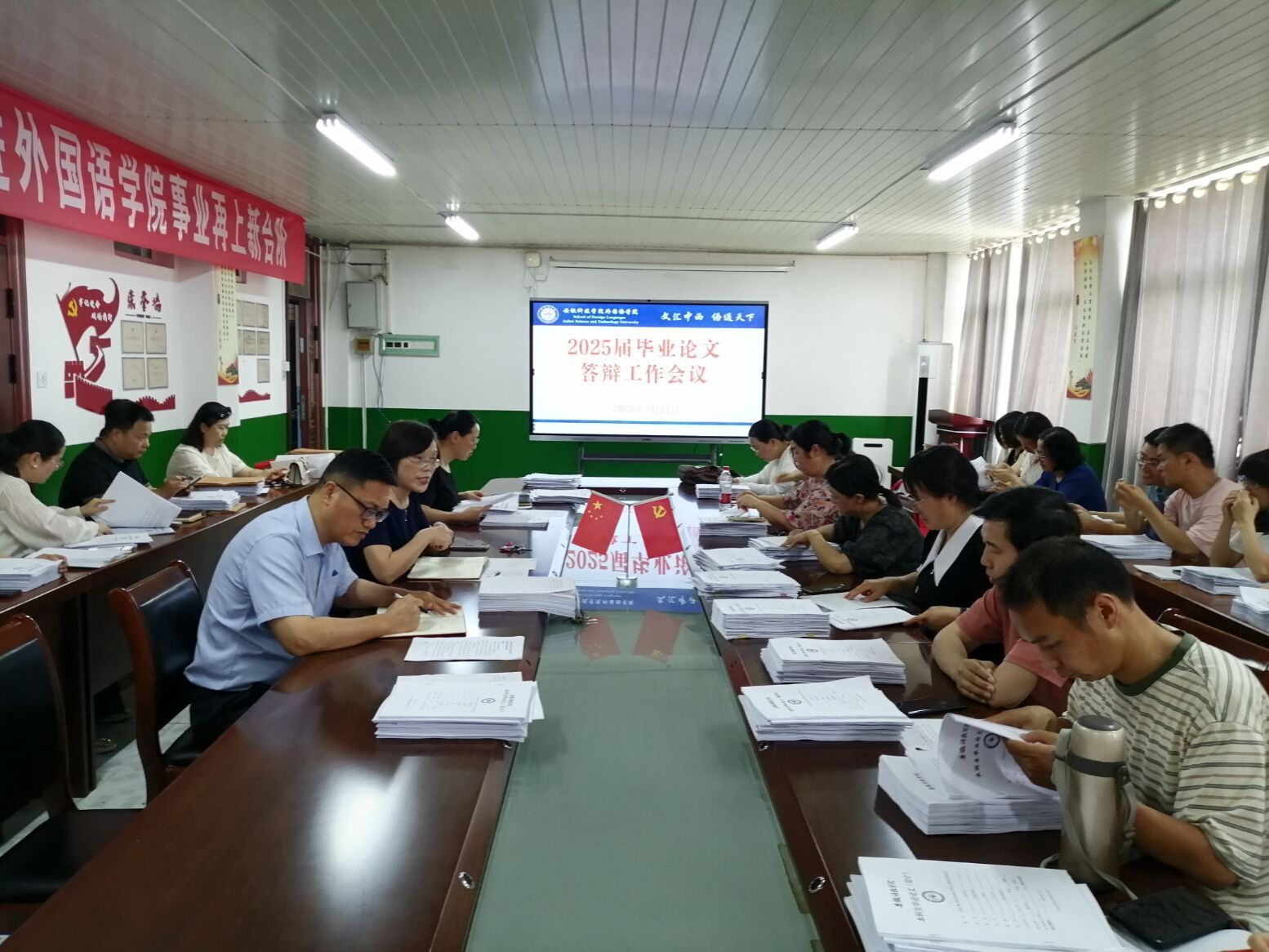 为做好2025届本科生毕业论文答辩工作,外国语学院于5月21日下午在学院会议室召开2025届本科生毕业论文答辩工作布置会议。所有论文指导教师参加会议,会议由学院院长刘萍主持。