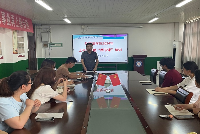 5月26日上午,外国语学院在学院会议室开展2024年上半年资助“两节课”培训,学院党委副书记张海亮、团委副书记宋兵兵以及各班资助委员共同参加培训,培训会由张海亮主持。