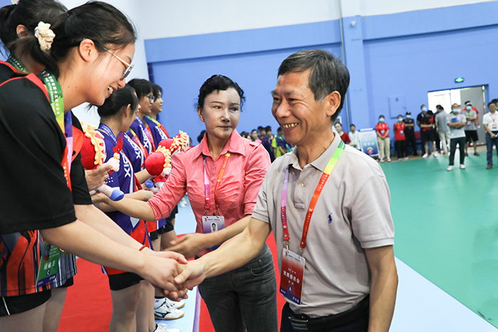 三亿网页版党委书记蒋德勤,党委副书记、院长李震,党委委员、副院长李升和,安徽省第十五届运动会高校部乒乓球比赛竞赛委员会成员武昌桥和比赛监督、比赛仲裁、比赛裁判长以及相关领导分别为获奖队伍颁发奖牌和纪念品并与获奖团队合影留念。