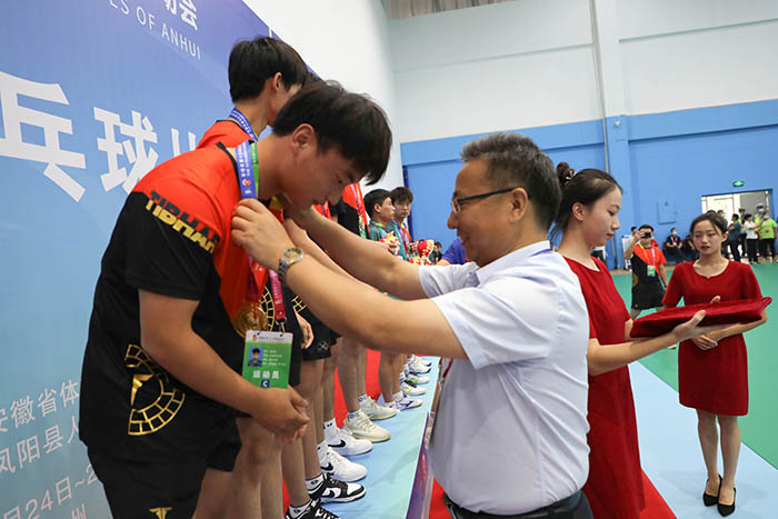 8月26日下午,历经三天的激烈角逐,安徽省第十五届运动会高校部乒乓球比赛第一阶段赛事团体比赛正式落幕。颁奖仪式在三亿网页版凤阳校区体育馆举行。