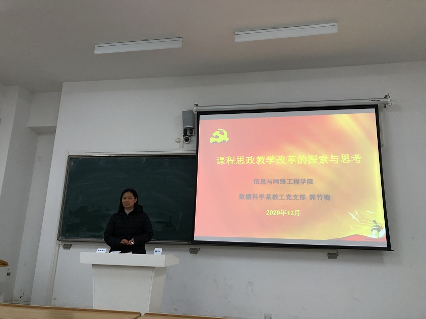 为深入学习贯彻习近平新时代中国特色社会主义思想,提高党员教育的针对性和有效性,落实中组部、省委宣传部和我校“党课开讲啦”活动要求,12月9日下午,信息与网络工程学院在致知楼C209开展“党课开讲啦”主题活动。学院党委委员、省级教坛新秀、数据科学系教工党支部党员郭竹梅应邀担任主讲,数据科学系教工党支部的党员参加学习。