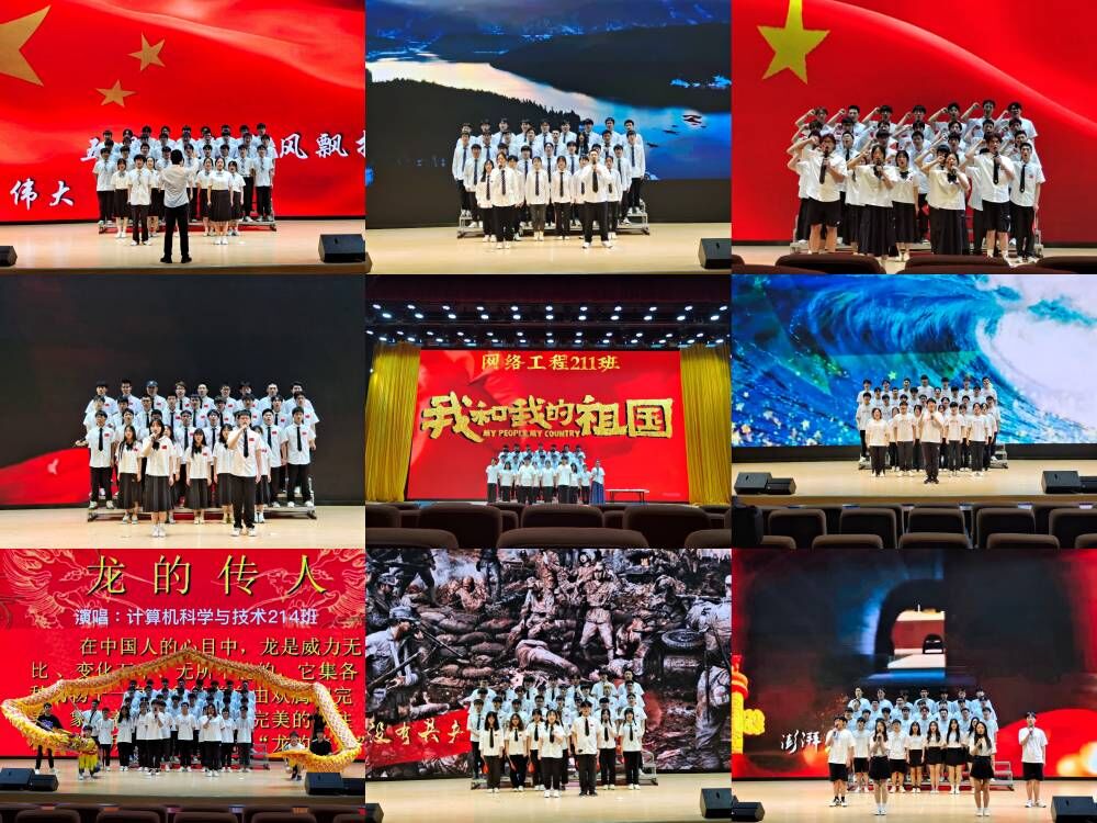 经过前期的认真筹划与准备,5月4前,各班级分批次在西辅楼报告厅进行现场录制。比赛录制现场,同学们激情澎湃、热情高涨。一首《唱支山歌给党听》唱出青年学子昂扬的斗志和奋发向上的决心;一首《我和我的祖国》表现了学生们热爱祖国的深厚情感,给观众以强烈的艺术感染;一首耳熟能详的《没有共产党就没有新中国》,点燃了观众的热情,歌颂了共产党的丰功伟绩;《我爱你,中国》、《我们都是追梦人》热情奔放、豪情壮志、一遍遍抒发着对祖国的歌颂与赞美;《我的中国心》、《歌唱祖国》唱出了学生们对祖国的深情赞美;《龙的传人》将中华儿女最真挚的情感与歌声交织在一起,唱出了中国人的铮铮铁骨;《红旗飘飘》刚强有力、满怀激情,将比赛推向高潮。同学们用嘹亮的歌声唱出了对党和祖国的热爱与崇敬,更唱出了新时代青年积极向上的精神风貌和对未来美好生活的无限憧憬,抒发了为国奋斗的爱国情怀!
