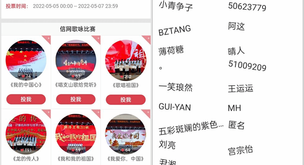 5月4日,学院共9个班级的红歌视频,经过剪辑制作,成功地上传到bilibili、易班等网络平台在全院进行播放和投票,经过一系列激烈的比拼,数据科学与大数据技术211班和计算机科学与技术213班荣获比赛一等奖;数据科学与大数据技术212班、网络工程中韩合作211班和网络工程212班荣获比赛二等奖;网络工程211班、计算机科学与技术211班、计算机科学与技术214班和计算机科学与技术212班荣获比赛三等奖。